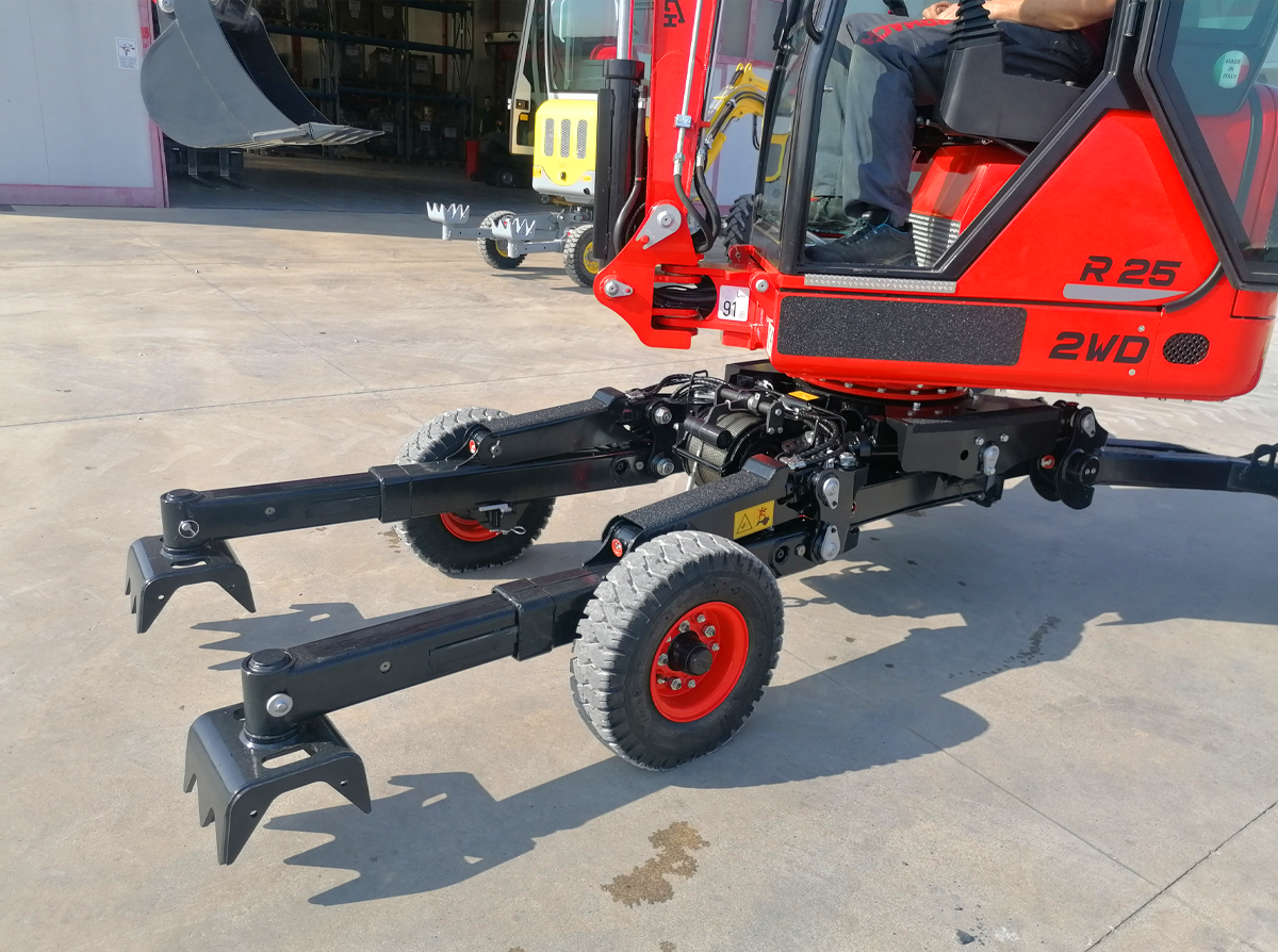 The R25 model is one of the smallest and most compact walking excavators on the market. It was born from the evolution of the mobile 1500 model and includes some new features compared to the previous model. The characteristics that differentiate it from 1500 are:hydraulic extensions of the front legs, standard cabin, manipulators with 2 mini-joysticks with 10 functions. The new R25 also features a new 1300 cm3 engine which makes it more performing. The frame of this very agile spider mini excavator is enclosed within one meter of width, a feature that makes it particularly suitable for carrying out small excavation works in very narrow and difficult environments.
